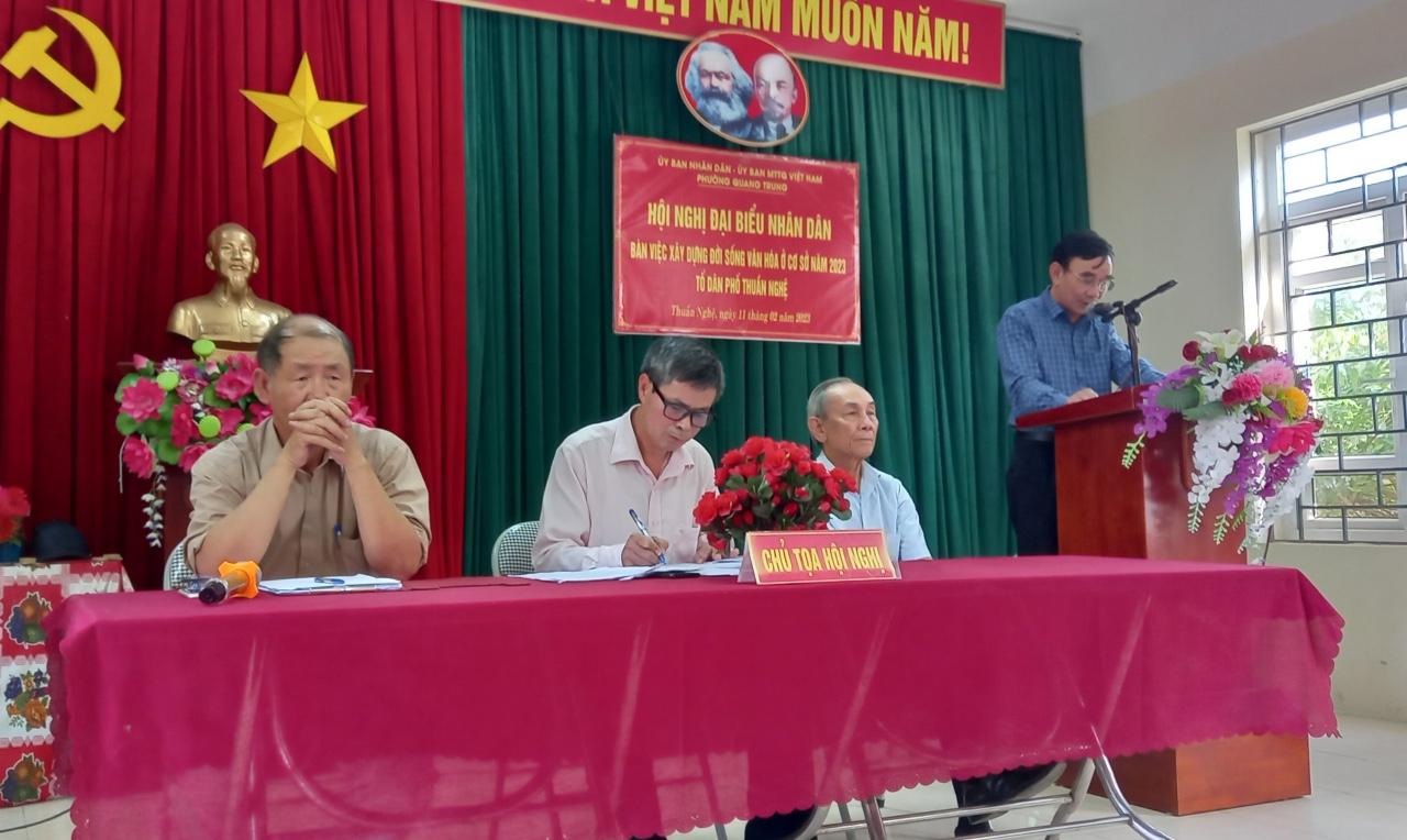 Chiều ngày 11/02/2023, Tổ dân phố Thuần Nghệ, phường Quang Trung đã tổ chức thành công Hội nghị đại biểu nhân dân năm 2023. -