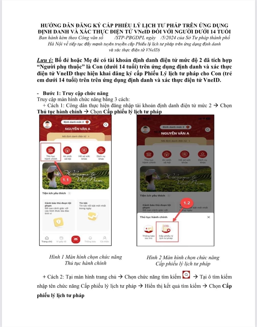 HƯỚNG DẪN ĐĂNG KÝ CẤP PHIẾU LÝ LỊCH TƯ PHÁP TRÊN ỨNG DỤNG ĐỊNH DANH VÀ XÁC THỰC ĐIỆN TỬ VNeID ĐỐI VỚI NGƯỜI DƯỚI 14 TUỔI