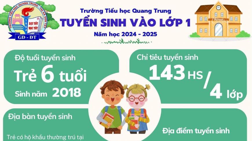 THÔNG BÁO TUYỂN SINH LỚP 1 TRƯỜNG TIỂU HỌC QUANG TRUNG NĂM HỌC 2024-2025